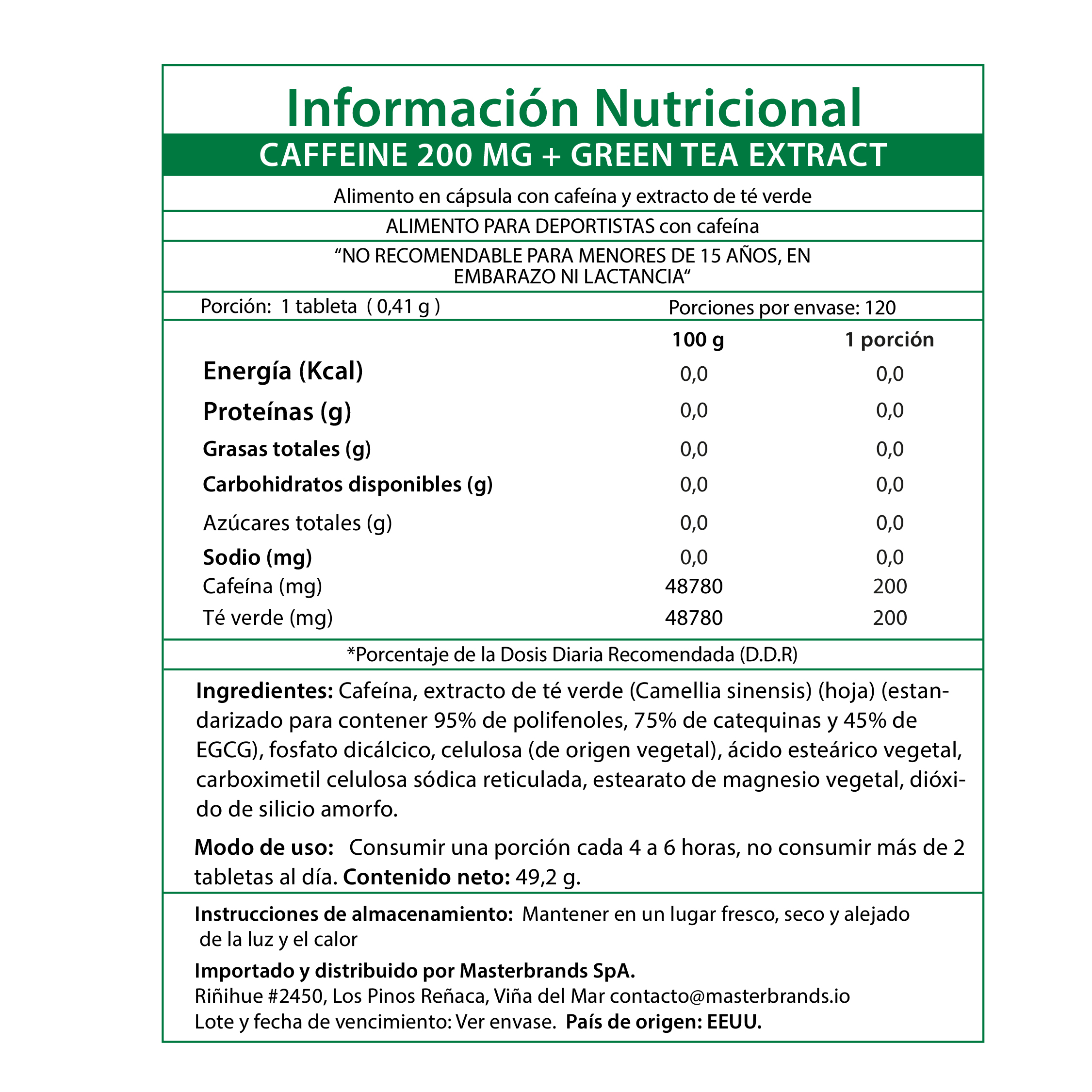 Cafeína 200 Mg con Té Verde – 120 Cápsulas