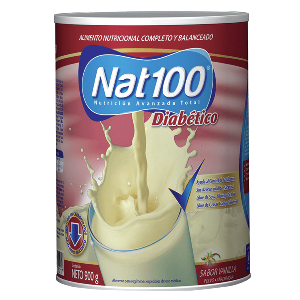 Nat100 Diabético es una fórmula completa y balanceada, reducida en carbohidratos y con Bajo Índice Glicémico (IG 31). No contiene azúcar añadida ni grasas trans, siendo libre de colesterol y rico en proteínas de alta calidad.