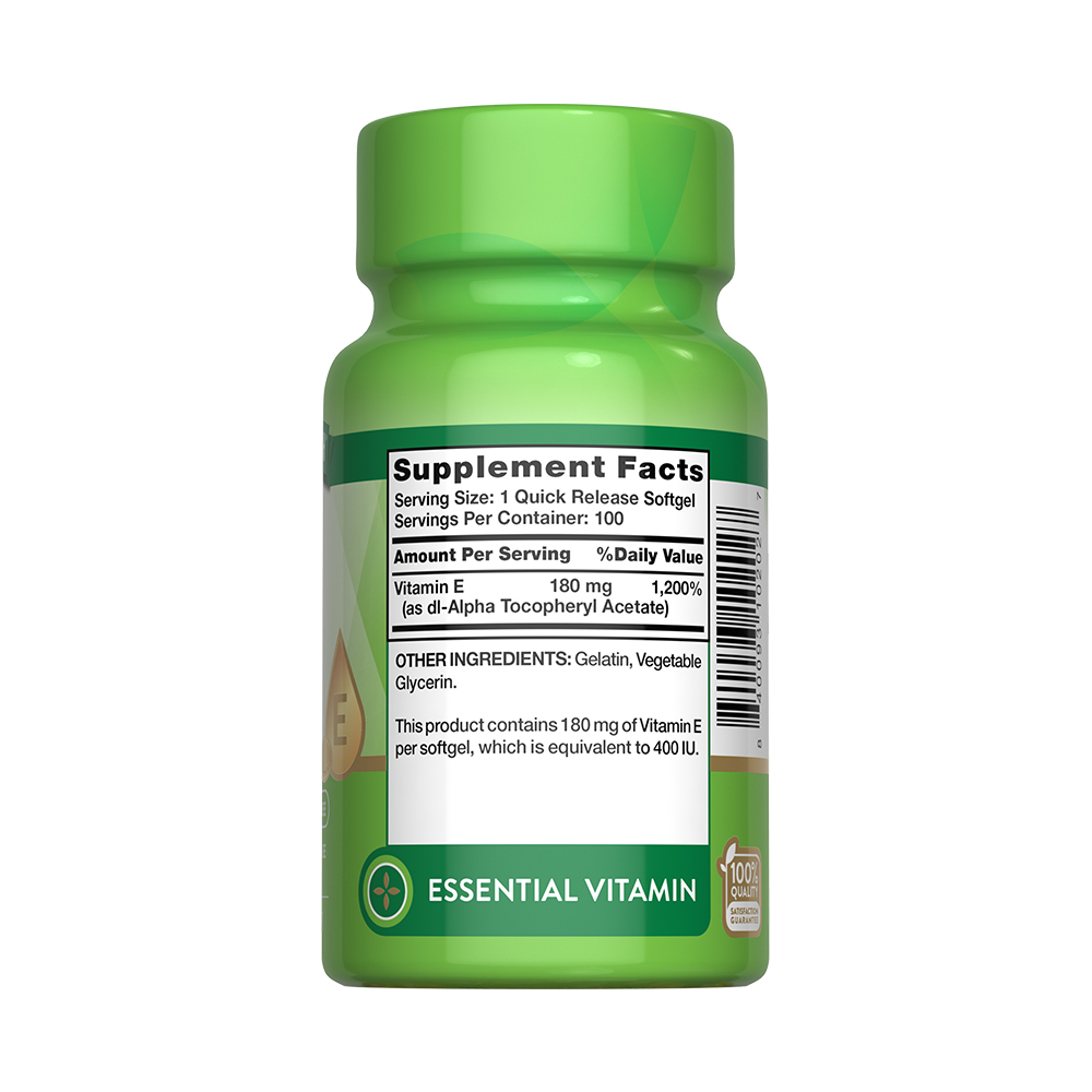 Nuestra fórmula natural de alta potencia proporciona 180 mg (400 UI) de vitamina E, como DL-Alfa tocoferol acetato, por cápsula blanda de liberación rápida, lo que lo convierte en una maravillosa adición a su rutina de bienestar.
