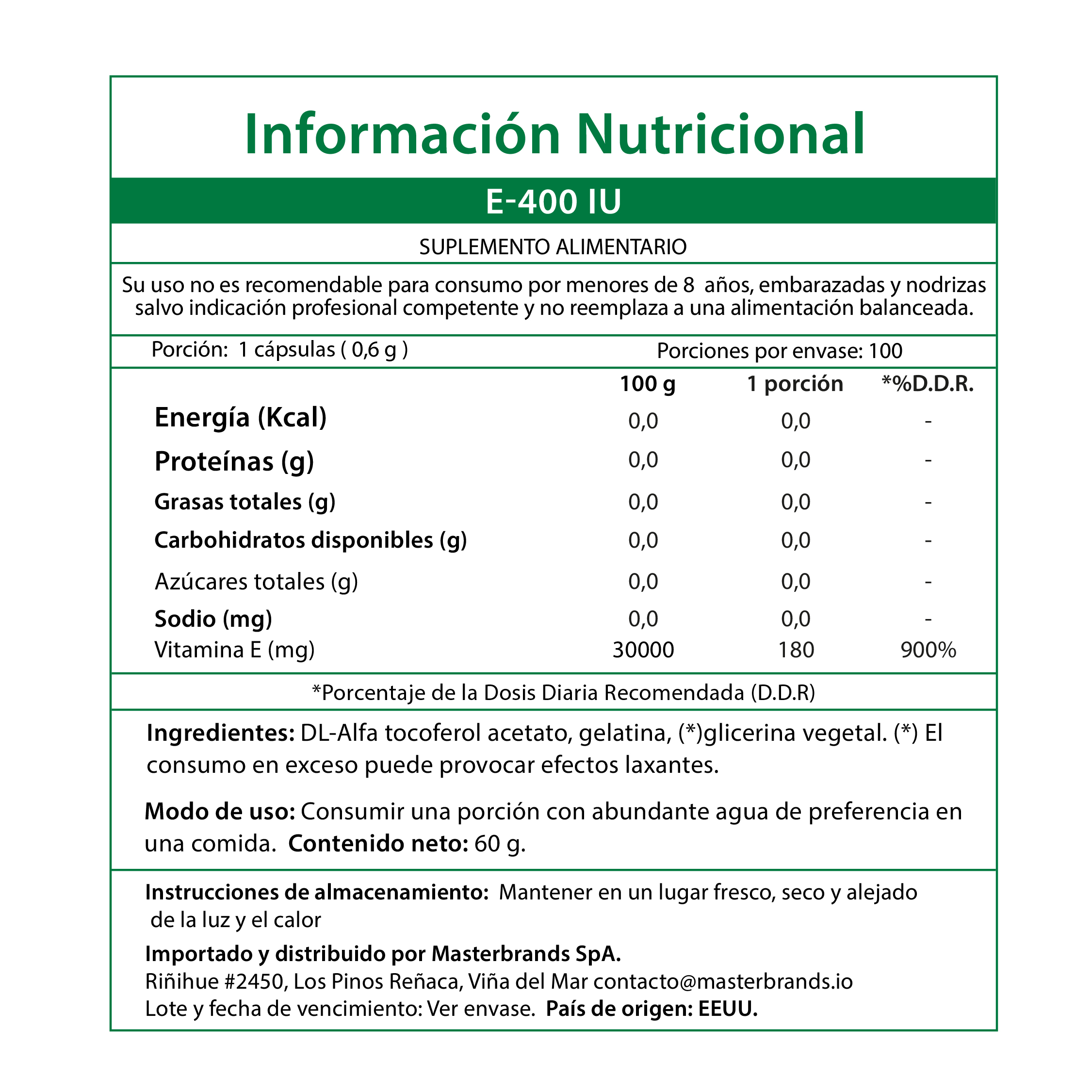 Vitamina E 400 IU – 100 Cápsulas Blandas